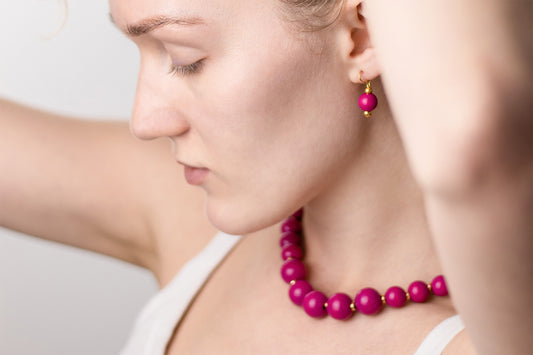 Bunte Perlen bringen gute Laune! Bei uns sind sie aus Holz und Glas, wir verarbeiten sie zu gradlinigen Schmuckstücken in frischen Einfarbigkeiten und knalligen Farbkombinationen.