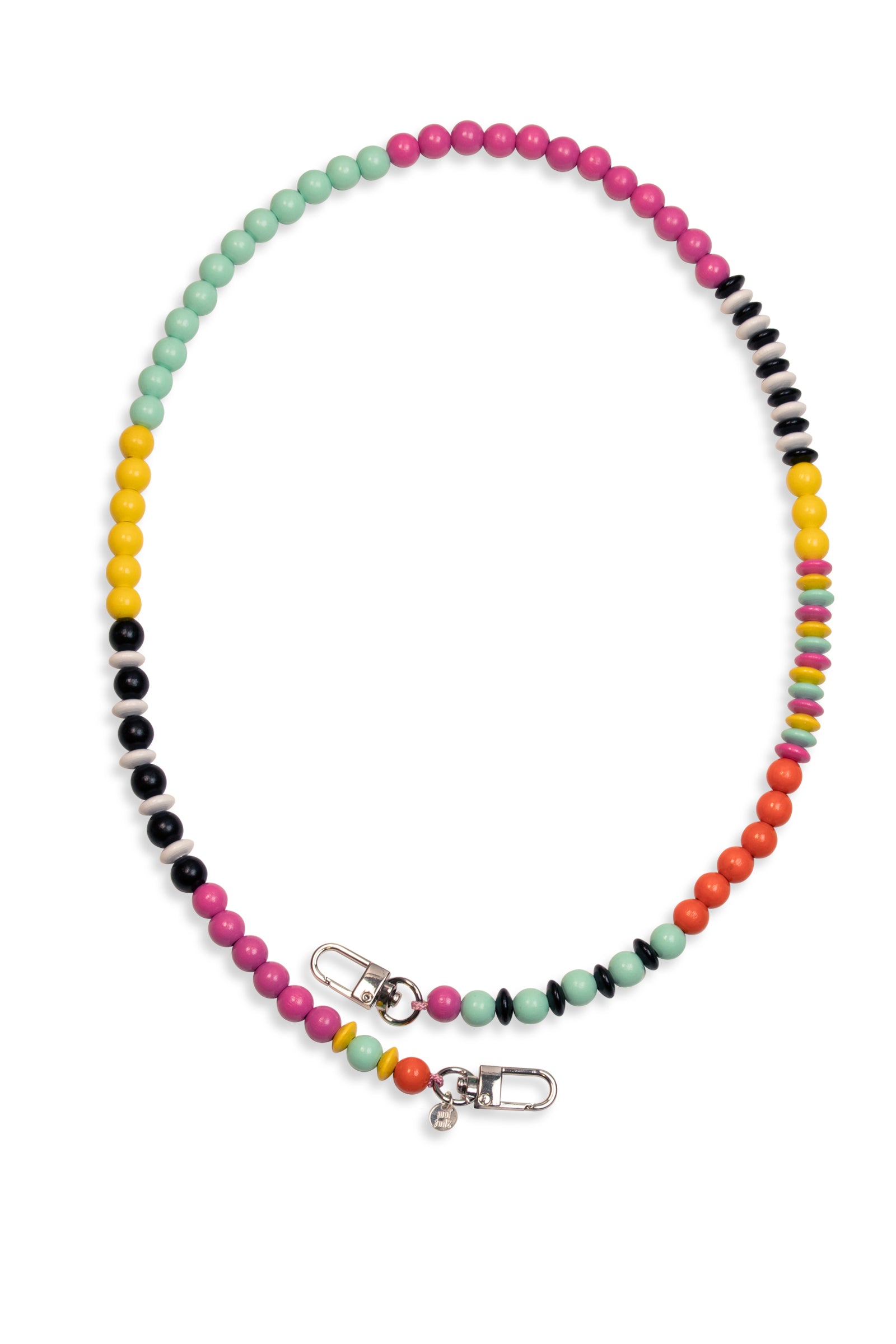 Diese Schlüsselkette hat eine Gesamtlänge von 80 cm, die Holzperlen haben wir auf eine stabile Schnur aufgefädelt und an den Enden Karabinerhaken befestigt.