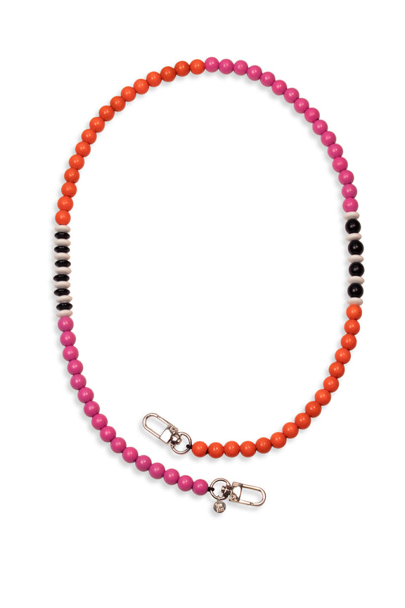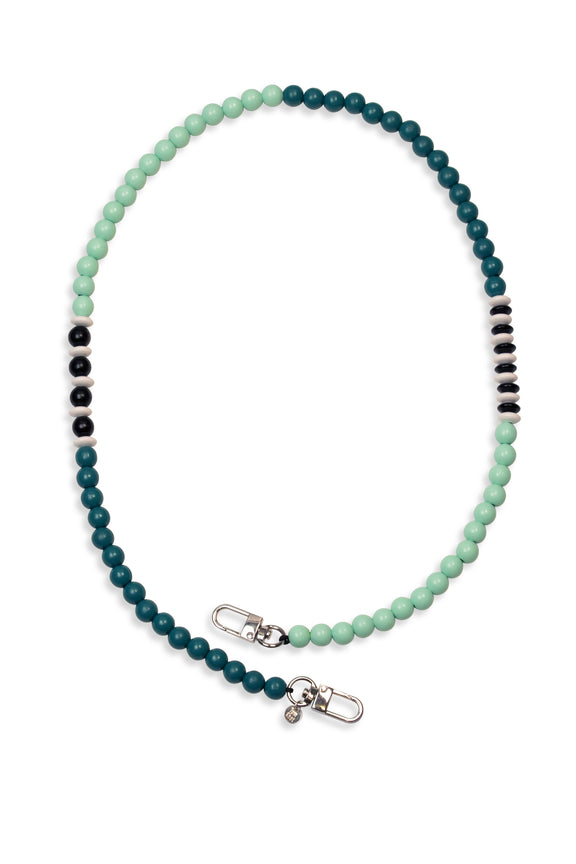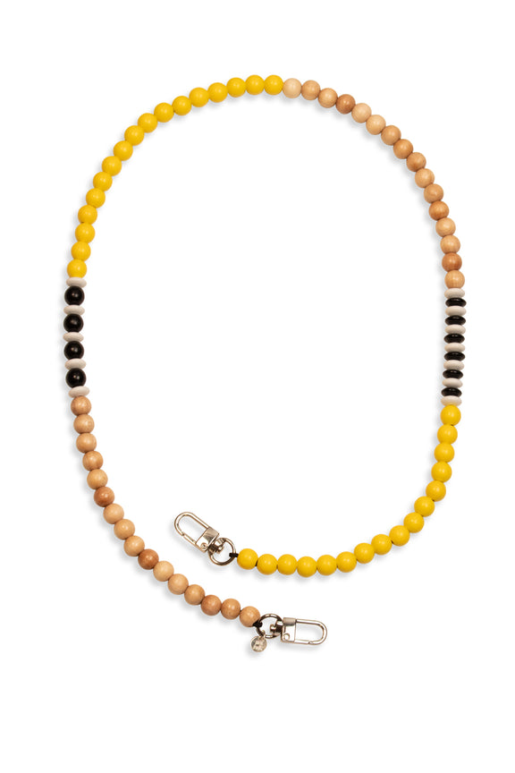 Diese Schlüsselkette hat eine Gesamtlänge von 80 cm, die Holzperlen haben wir auf eine stabile Schnur aufgefädelt und an den Enden Karabinerhaken befestigt.