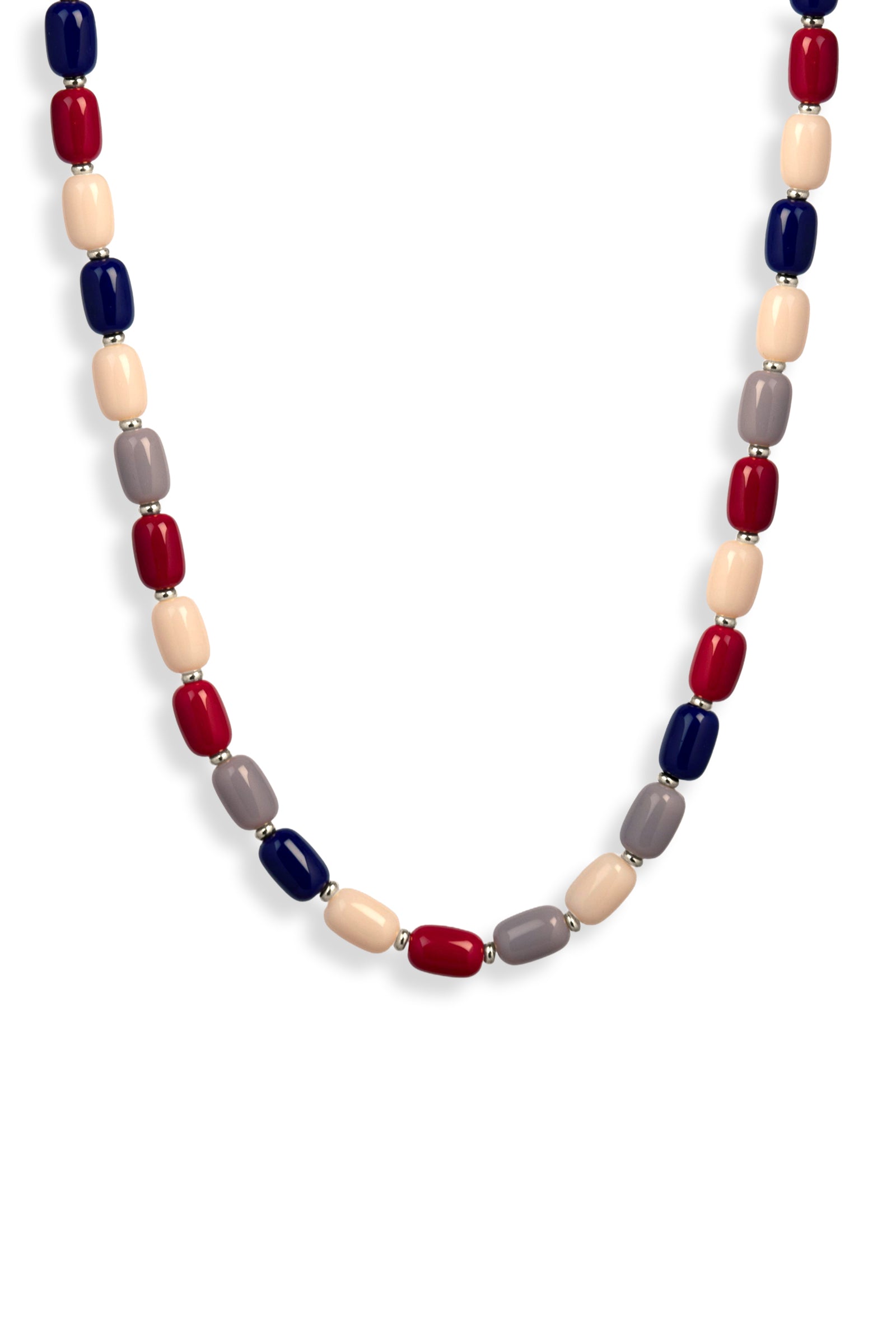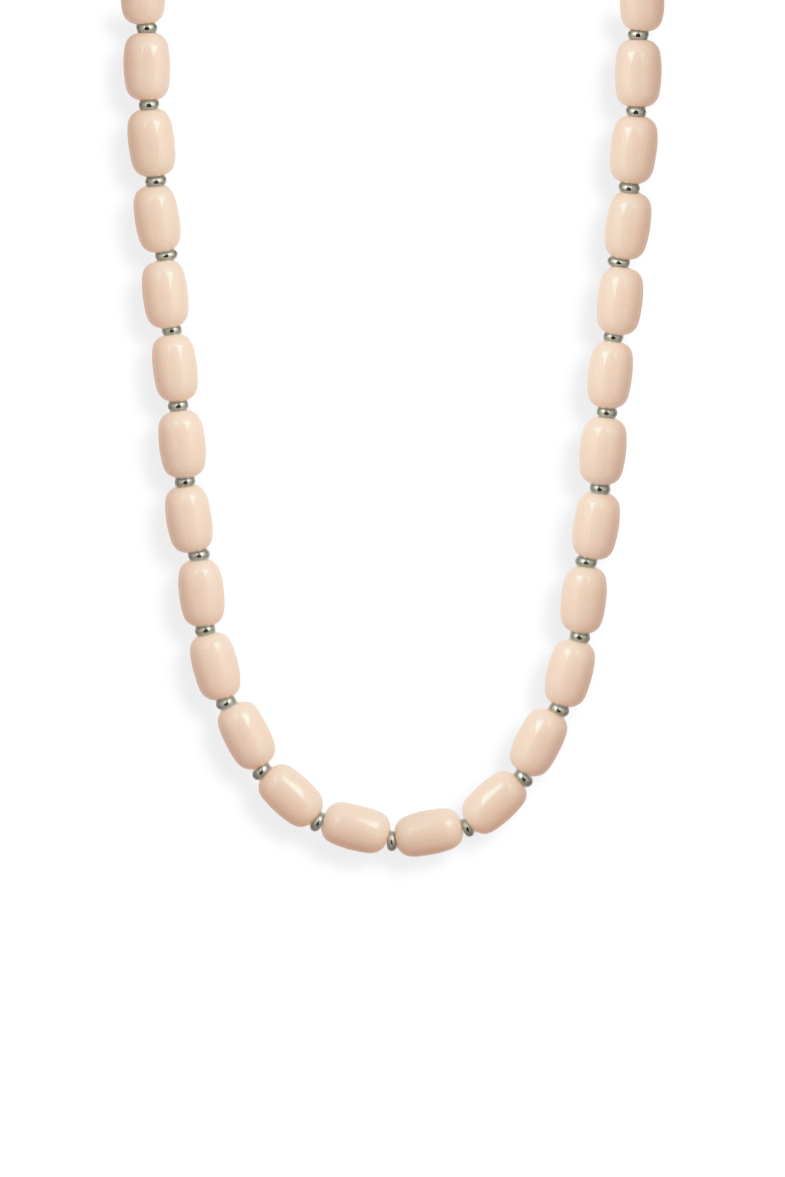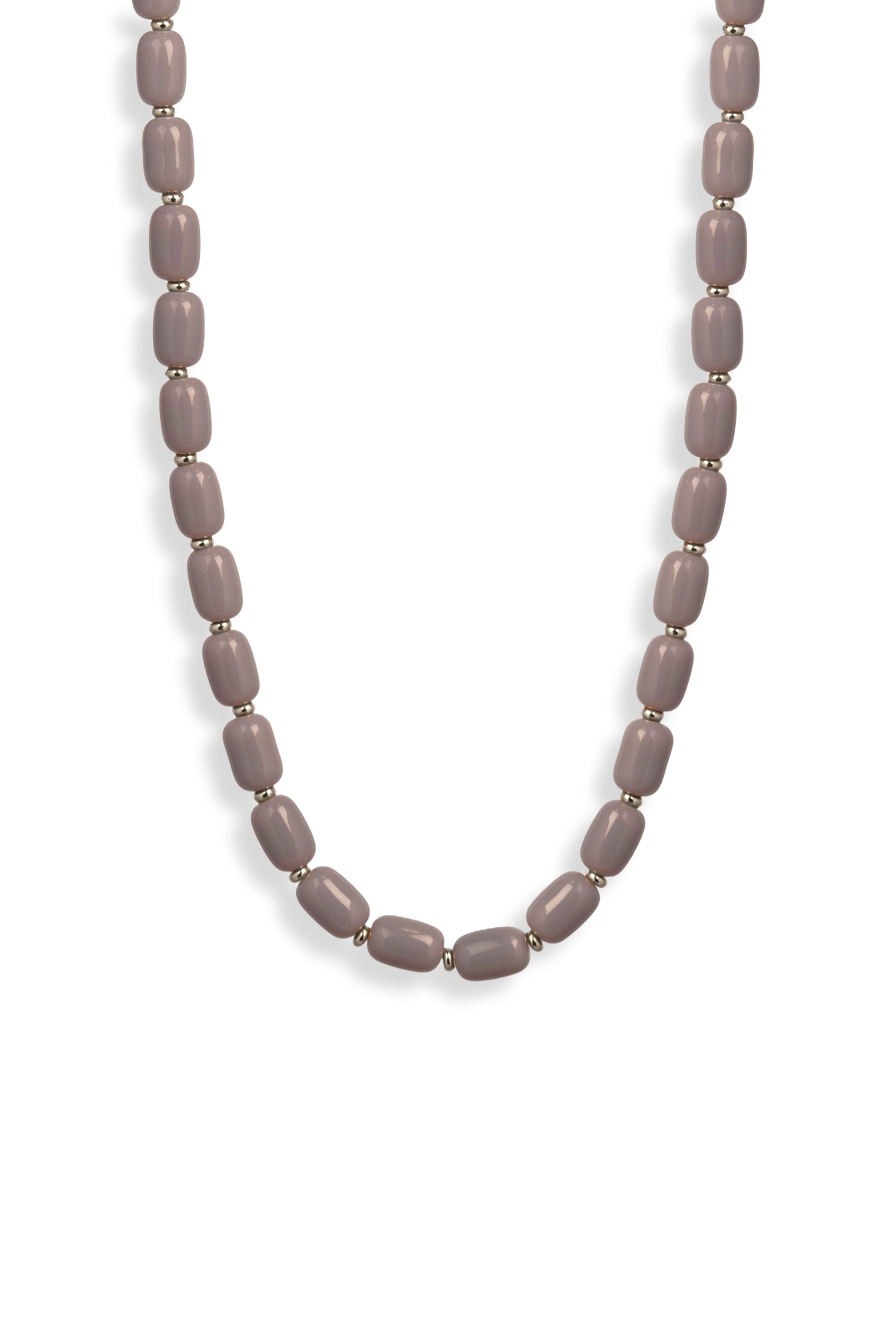 Dieses Collier besteht durchgängig aus unserer formschönen Barrelperle, veredelt wird es durch metallisierte Zwischenperlchen.
