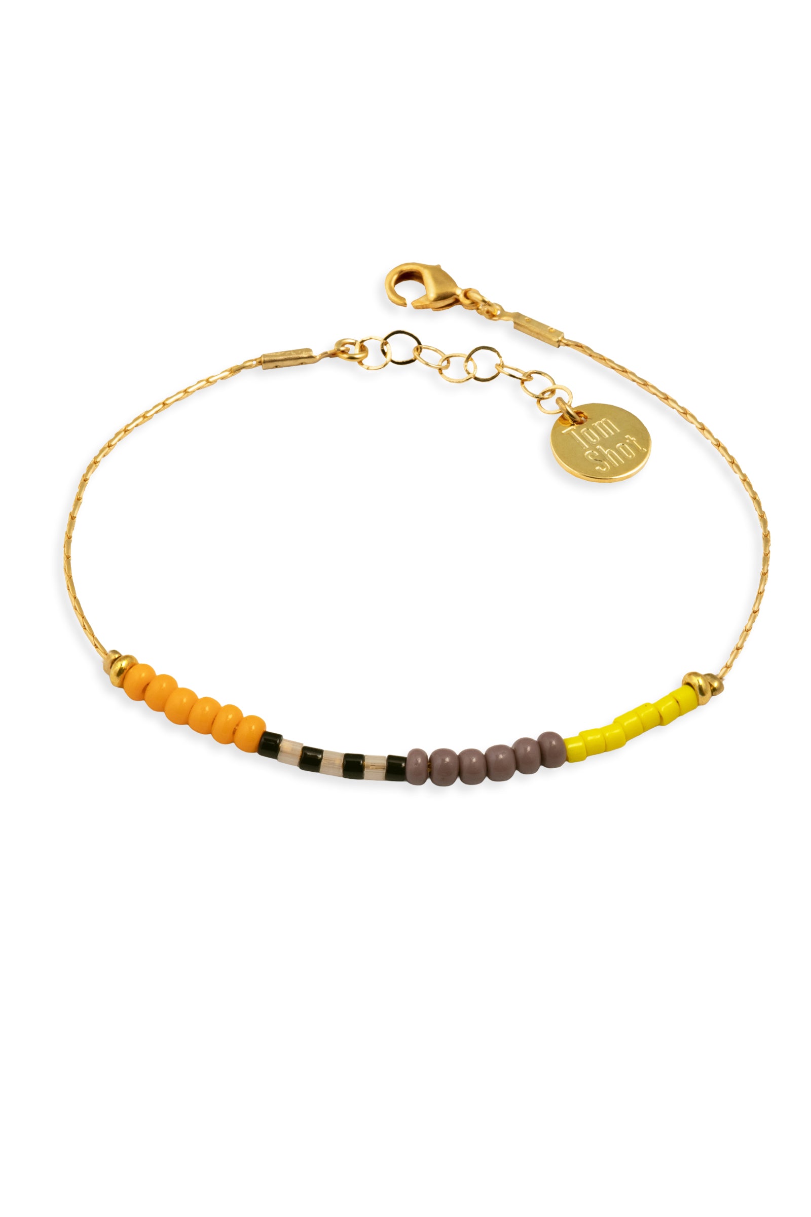 Bunte Rocailleperlchen unterschiedlicher Form sind hier auf einen Abschnitt feiner Palomakette gefädelt. Das Armband ist 16 cm lang und kann durch das Verlängerungskettchen um 2 cm verlängert werden.