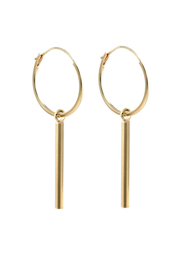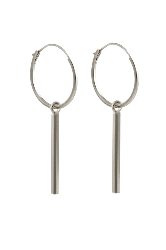 Dieses massive Metallstäbchen ist 2 cm lang und hängt an einer Creole aus massivem 925er Sterlingsilber (in der goldenen Variante zusätzlich vergoldet).