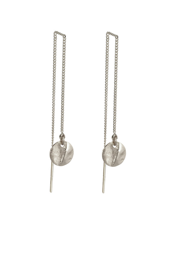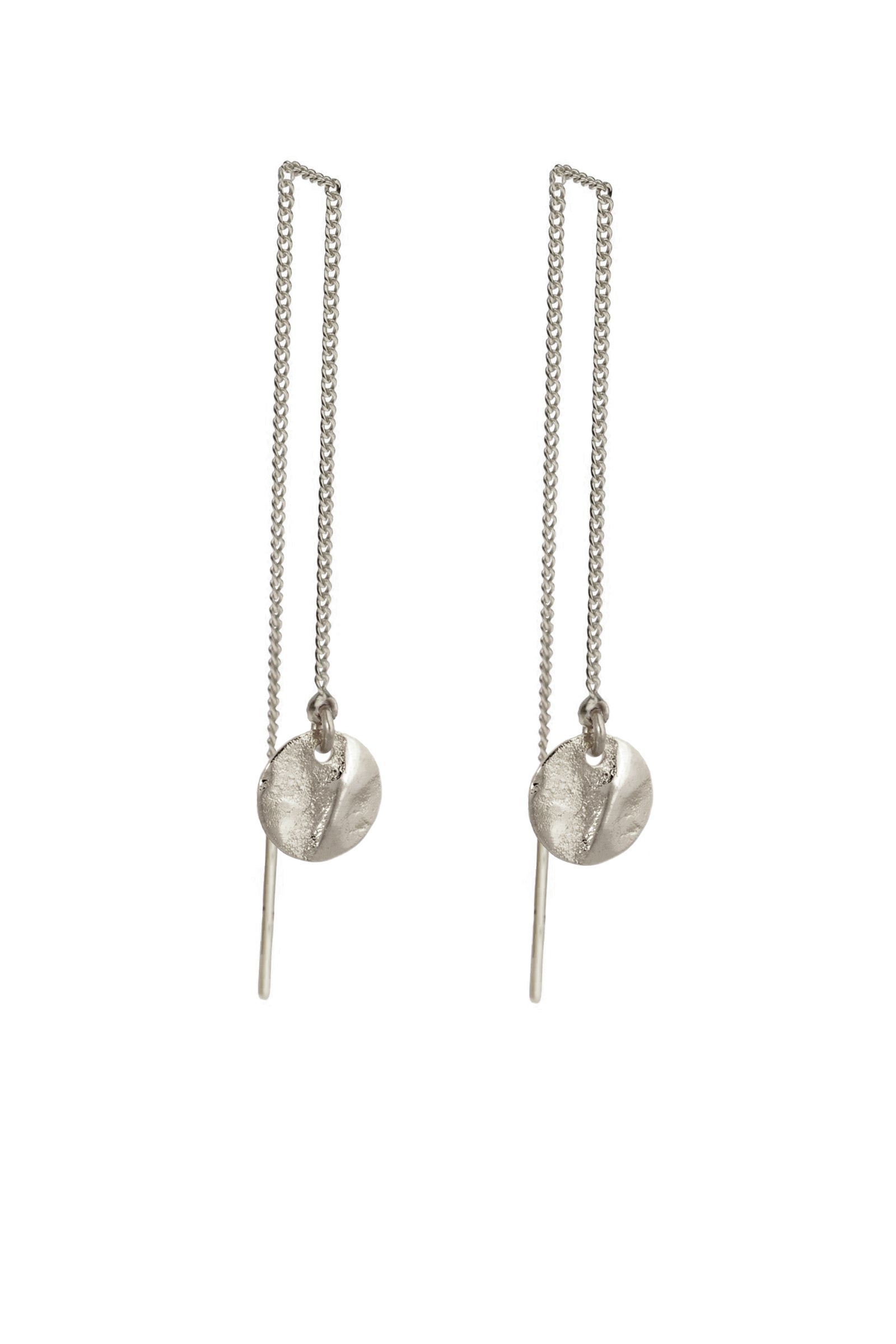 Das Plättchen ist der Oberflächenstruktur eines Felsens nachempfunden und hat einen Durchmesser von 8 mm. Die Ohrkette hat eine Länge von 10 cm und ist komplett aus 925 Silber, also antiallergisch und nickelfrei.
